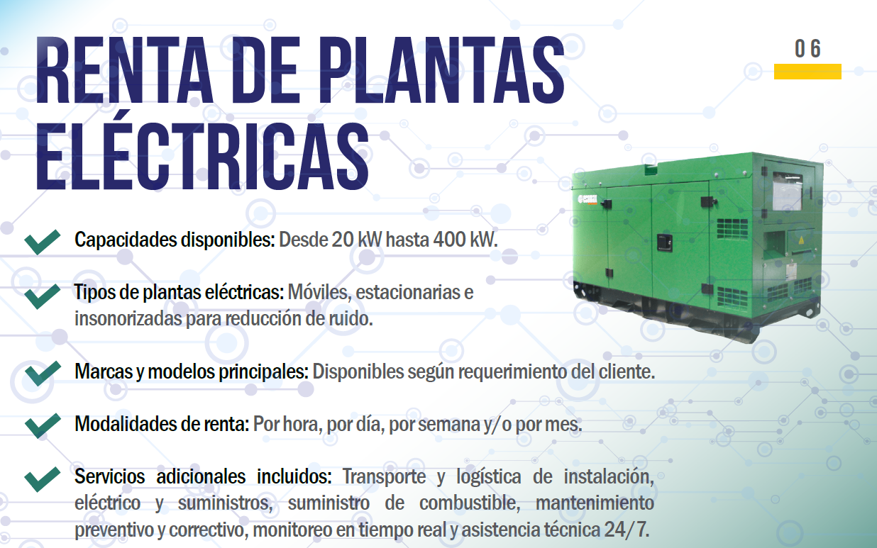 Solicita ahora una asesoría personalizada y descubre cómo nuestras soluciones de respaldo y alquiler de plantas eléctricas te permiten operar sin interrupciones, reducir riesgos y optimizar tus recursos.